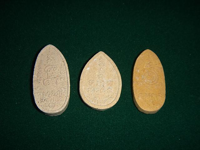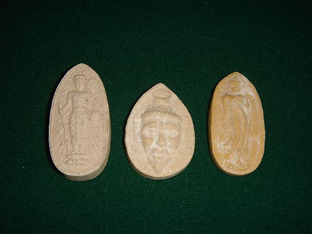 เป็นพระในชุดพิมพ์จิ๋ว ปี 2530 ของหลวงพ่อสาคร วัดหนองกรับ จังหวัดระยอง มี 1. พระสิวลี หลังยันต์นะโภคทรัพย์ เนื้อผงพุทธคุณ 2. เศียรพ่อแก่ฤๅษี หลังยันต์ เนื้อสีขาว 3. พระลีลาทุ่งเศรษฐี หลังยันต์นะเศรษฐี เนื้อว่านดอกทอง องค์พระลีลา จะโก่งนิดหน่อยค่ะ ตั้งราคาตามใจคุณอาค่ะ(รูปอาจจะไม่ค่อยชัดเท่าไรเพราะถ่ายรูปตอนกลางคืนค่ะ) |