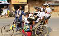 วันนี้ก็เลยไปฉกเอาภาพ "รถนักเรียน" จากแดนอินตะระเดีย มากฝาก เป็นรถถีบสามล้อที่คุณน้องๆ หนูๆ ปีนป่ายยึดหาที่นั่ง-ที่ยืนกันจนเต็มคันรถ เห็นแล้วน่าหวาดเสียวเกิดอุบัติโหดล้มคว่ำกันจริงๆ!