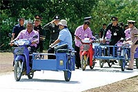 แต่กระนั้น สมเด็จพระเทพรัตนราชสุดาฯ สยามบรมราชกุมารี ทรงมีพระราชประสงค์ประทับรถจักรยานยนต์พ่วงของชาวบ้าน ที่เป็นเพียงรถธรรมดาไม่มีการตกแต่ง ไม่มีที่บังแดดแต่อย่างใด และชาวบ้านก็เป็นพลขับถวายพระองค์ ซึ่งพระองค์ทรงสวมเพียงพระมาลาเป็นที่บังแดด และทรงมีพระพักตร์ยิ้มแย้มแจ่มใสตลอดเส้นทางกว่า 1 กิโลเมตร