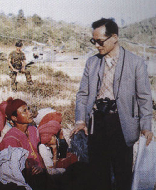 ตั้งแต่พุทธศักราช 2502 เป็นต้นมา พระบาทสมเด็จพระเจ้าอยู่หัว พร้อมด้วย สมเด็จพระนางเจ้าสิริกิติ์ พระบรมราชินี ได้เสด็จพระราชดำเนินไปทรงกระฉับสัมพันธไมตรีกับประเทศต่าง ๆ ทั้งในยุโรป อเมริกา ออสเตรเลีย และ เอเชีย และได้เสด็จพระราชดำเนินไปทรงเยี่ยมราษฎรในภูมิภาคต่างๆ ทุกภาคทรงประจักษ์ในปัญหาของราษฎร ในชนบทที่ดำรงชีวิตด้วยความยากจน ลำเค็ญ และด้อยโอกาส ได้ทรงพระวิริยะอุตสาหะหาทางแก้ปัญหาตลอดมาตราบจนปัจจุบัน อาจกล่าวได้ว่า ทุกหนทุกแห่งบนผืนแผ่นดินไทยที่รอยพระบาทได้ประทับลง ได้ทรงขจัดทุกข์ยากนำความผาสุกและทรงยกฐานะความเป็นอยู่ของราษฎร ให้ดีขึ้นด้วยพระบุญญาธิการ และพระปรีชาสามารถปราดเปรื่อง พร้อมด้วยสายพระเนตรอันยาวไกล ทรงอุทิศพระองค์เพื่อประโยชน์สุขของราษฏรและเพื่อความเจริญพัฒนาของประเทศชาติตลอดระยะเวลาโดยมิได้ทรงคำนึงประโยชน์สุขส่วนพระองค์เลย