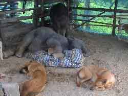เจ้าของศูนย์ยังเล่าถึงที่มาของช้างพลายโฮป กับน้องหญิงและเจ้าเพสที่มีความสนิทสนมกันว่า เดิมทีน้องหญิงและเจ้าเพส เป็นสุนัขในหมู่บ้านแห่งนี้ ตนนำมาเลี้ยงตั้งแต่เล็กๆ ส่วนช้างชื่อพลายโฮป นั้นแม่ของเจ้าโฮป ได้เสียชีวิตไป ตนได้ซื้อจากชาวเขาเผ่ากะเหรี่ยงมาตั้งแต่เล็กๆ เช่นกัน ทั้ง 3 ตัวปัจจุบันมีอายุเท่ากันคือ 7 ปี ปกติแล้วช้างกับสุนัข จะไม่ค่อยอยู่ด้วยกัน ช้างจะไม่ชอบสุนัข แต่สุนัขมักจะพยายามไปเล่นกับช้างหรือเห่า ทำให้ช้างส่วนมากจะรำคาญ ส่วนพลายโฮป กับน้องหญิงและเจ้าเพสไม่เหมือนตัวอื่นๆ เพราะทั้งคู่เจอกันตั้งแต่เล็กๆ ตอนแรกๆ เจ้าโฮป ก็จะเอางวงไล่ทั้งน้องหญิงและเจ้าเพสไม่ให้เข้าใกล้ แต่เจ้าหมา 2 ตัวก็ตี๊อจะเล่นด้วย