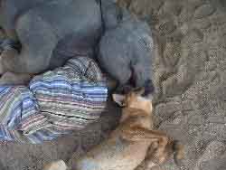 กระทั่งต่อมามีนักท่องเที่ยวมาที่ศูนย์ จะเข้าไปหาพลายโฮป ทั้งน้องหญิงและเจ้าเพสจะคอยเห่าไล่เหมือนกับคอยปกป้องพลายโฮป ทำให้พลายโฮป รู้สึกว่าทั้ง 2 เป็นมิตรและคอยปกป้องมัน ต่อมาจึงปล่อยให้ทั้งน้องหญิงและเจ้าโฮปเข้าใกล้ และสนิทสนมกันตั้งแต่นั้นมา โดยทั้ง 3 จะหยอกล้อกันเล่นทุกวันและนอนด้วยกัน เจ้าโฮป ถือเป็นช้างเชือกเดียวในศูนย์ที่ยอมให้สุนัขทั้งสองเข้าใกล้ ส่วนช้างเชือกอื่น ยังคงกลัวและไม่ชอบสุนัขเหมือนเดิม ปัจจุบันนี้ ทั้งน้องหญิง และเจ้าเพส รวมทั้งช้างพลายโฮป จะนอนด้วยกันอยู่ด้วยกันไปไหนไปด้วยกันตั้งแต่เล็กจนโต |