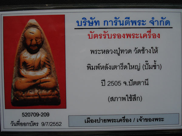 บัตรรับรองพระเครื่อง...ของบริษัท การันตีพระ จำกัด