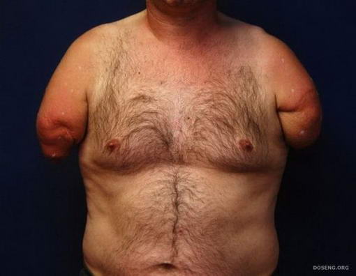 เป็นภาพก่อนผ่าตัดของชาวเยอรมนีวัย 54 ปี ผู้เสียแขนทั้งสองข้างจากอุบัติเหตุ เมื่อ 6 ปีก่อน