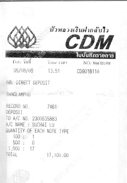 ผมก็โอนเงินให้ผู้ตั้งประมูลวันที่ 5/8/52 (ดังไฟล์ที่แนบ) และได้โทรบอกผู้ตั้งประมูลรับทราบ