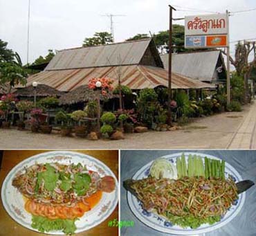 วันนี้ขอแนะนำร้านอาหารอร่อยๆ ให้เพื่อนสมาชิกที่มีโอกาสแวะเวียนขึ้นมาเที่ยว จ.กาญจนบุรี นะครับ..ร้านนี้มีชื่อว่า "ครัวลูกแก" ตั้งอยู่ที่ปากทางเข้าวัดลูกแก อ.ท่ามะกา เมนูเด็ดของที่นี่ก็จะเป็นอาหารประเภทปลาแม่น้ำ เช่นปลายี่สก ,ปลากดคัง,ปลาบึก ฯลฯ บริหารงานโดย..คุณสังคม เกษมะณี เปิดบริการตั้งแต่เวลา 15.00 - 22.00 น. โทรจองโต๊ะหรือสั่งอาหารล่วงหน้าได้ที่เบอร์ 034-566615,09-9192128 รับประกันเรื่องรสชาติและราคาเป็นกันเองครับ..