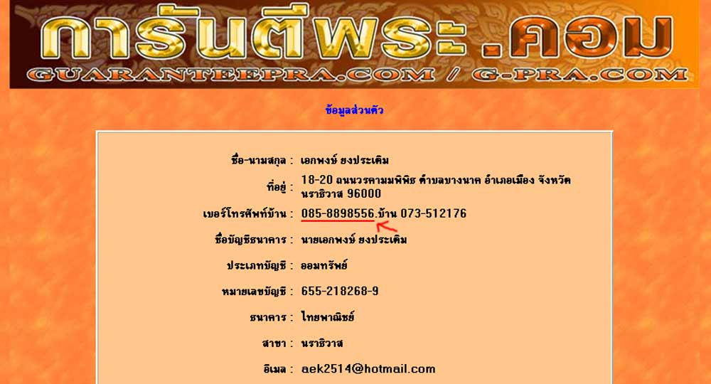 และต้องขอขอบคุณ webmaster มากครับ เพราะในช่วงที่โทรศัพท์ผมหาย ทาง web ได้ช่วยเปลี่ยนเบอร์ติดต่อเป็น 085-8898556 ให้ในข้อมูลส่วนตัวผม (ตามภาพ)