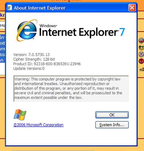 - พี่ต้องทำการติดตั้ง IE v.7 ครับ (Internet Explorer เวอร์ชั้น 7) ครับ ทำการ Update จาก Version เดิม ที่มากับ Windows XP ครับ