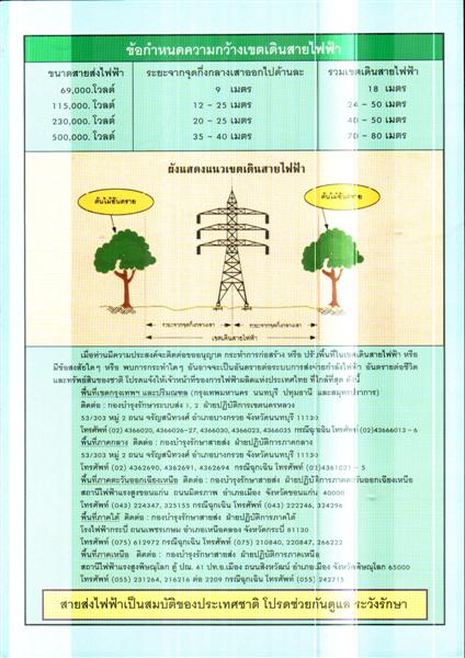 เผื่อจะมีประโยชน์แก่เพื่อนๆ โฉนดที่ดินใต้สายส่งสามารถซื้อขายกันได้ เพราะเป็นการรอนสิทธิ์ ไม่เหมือนเวนคืน แต่ก็มีข้อจำกัดเนื่องจากต้องคำนึงถึงความปลอดภัยแก้ชีวิตและทรัพย์สิน เพราะเป็นไฟแรงสูง เพราะฉะนั้นในรัศมีจากแนวสายส่ง ระยะตามตาราง ห้ามมีสิ่งปลูกสร้างใดๆ ก่อนซื้อต้องพิจารณาเรื่องราคา และข้อจำกัดในการใช้ประโยชน์ด้วยครับ |