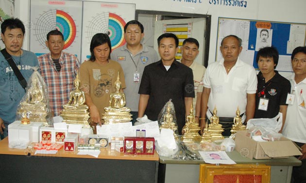 ผู้สื่อข่าวรายงานวันนี้ (10 ก.ย.) ว่า เมื่อช่วงเช้าที่ผ่านมา พ.ต.ท.ฉกาจน์ เทียมวงศ์ รองผกก.สภ.เมืองหนองคาย, พ.ต.ต.ธราธิป เข่งคุ้ม สว.สส. พร้อมเจ้าหน้าที่ชุดสืบสวนได้ร่วมกันสอบสวนจับกุมนางสาวหวน เล ถิ อายุ 41 ปี อยู่บ้านเลขที่ 920/9 หมู่ 14 ต.ในเมือง อ.เมืองหนองคาย พร้อมของกลางเป็นพระพุทธรูปหลวงพ่อพระใส องค์จำลอง รุ่นบารมีพ่อ ซึ่งเป็นรุ่นล่าสุดที่ทางวัดโพธิ์ชัย อ.เมืองหนองคาย จัดสร้างขึ้น โดยมีทั้งพระพุทธรูปขนาดหน้าตัก 9 นิ้ว 3 องค์, ขนาดหน้าตัก 5 นิ้ว 4 องค์, ขนาดหน้าตัก 3 นิ้ว 3 องค์, ลูกแก้วพระใส 8 องค์,เหรียญแช่น้ำมนต์พระใส 17 องค์, พระใสยอดธง 68 องค์, กำไลพระใสปั๊ม 84 องค์, พระใสเหรียญต้นตระกูล 7 สี 7 องค์ 18 ชุด, พระใสปรกใบมะขาม 101 องค์ และพระเครื่องหลวงพ่อพระใสอีกหลายรูปลักษณ์ รวม 28 รายการ มูลค่าประมาณ 150,000 บาท