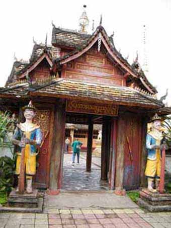 รูปบน ยักษ์ ( น่าจะเป็นนายทวาร ) เฝ้าประตูทางเข้าวัดในเมืองลา