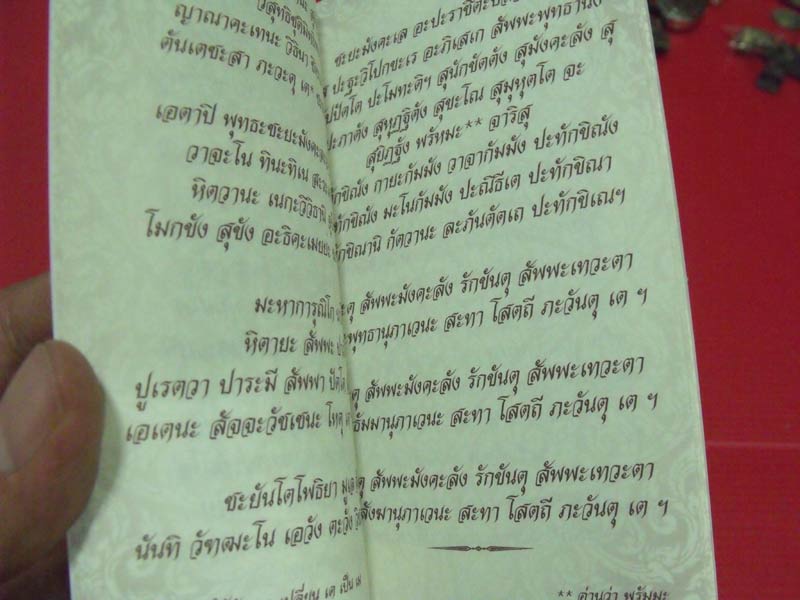 คิดว่าชาวพุทธ คงจะมีกันทั้งนั้น โดยเฉพาะสมาชิกชาว การันตีพระ พอดีผม และครอบครัว ญาติสนิท มิตรสหาย ได้รวบรวมปัจจัยคนละเล็กละน้อย จัดทำหนังสือสวดมนต์เล่มนี้มาแจก ส่วนตัวผมทำ 15 เล่ม (ตามกำลังความสามารถ) แจกไปบ้างแล้ว ตอนนี้จะมอบให้กับสมาชิก การันตีพระ 5 ท่านแรกที่ตอบกระทู้ ลงชื่อ-ที่อยู่ใว้ด้วยนะครับ หรือจะส่งมาที่ข้อความส่วนตัวของผมก็ได้นะครับ |