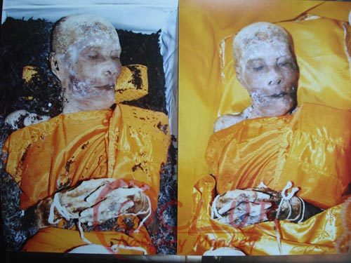 มาพร้อมรูปถ่ายจริง หลงจากเก็บร่างหลวงปู่ไว้เป็นเวลา 1 ปีเต็ม ร่างหลวงปู่ไม่เน่าเปลื่อย ผิวหนัง เส้นผม ขนตายังอยู่ครบ เล็บหลวงปู่ก็งอกออกมาอยู่ ราวกับว่ายังหายใจอยู่ และร่างกายหลวงปู่ยังอ่อนและสามารถจับเคลื่อนไหวได้ สังเกตุ จากรูปที่ผมลงให้ชมนะครับ รูปด้านซ้ายและขวา หน้าหลวงพ่อจะ หันหน้าแตกต่างกัน วันนี้มาประกาศชื่อผู้ที่ตอบคำถามถูก ทั้งหมดมี 2 ท่าน คำตอบคือ 50 ลูกครับ