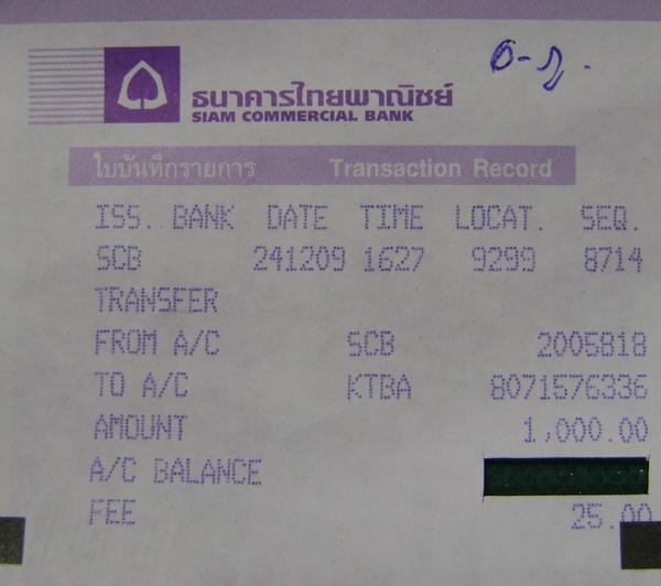 วันนี้ดำเนินการโอนเงินเข้าบัญชี อ.ภู เป็นจำนวน 1,000 บาทครับ
