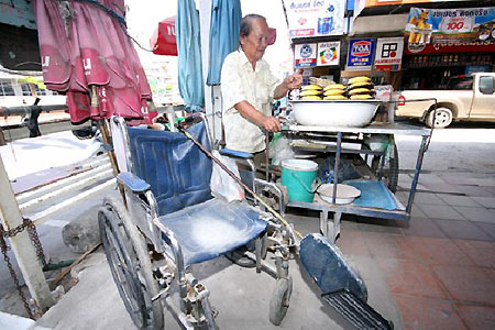 เมื่อวันที่ 11 ก.พ. ชาวบ้านที่เดินทางผ่านตลาดเจ้าพรหม หน้าเทศบาลนครพระนครศรีอยุธยา อ.พระนครศรีอยุธยา จ.พระนครศรีอยุธยา ต่างร่ำลือถึงภาพความน่ารักของสองตายายที่อายุมาก โดยทุกวันสามีจะประคองพาภรรยามาขายกล้วยปิ้ง มันเผา เพื่อหารายได้ไปซื้อข้าวกินเพื่อประทังชีวิต โดยฝ่ายชายจะเข็นรถให้ภรรยาวัยกว่า 80 ปี ที่พิการท่อนล่างเพราะขาทั้ง 2 ข้างเป็นอัมพาตเดินไม่ได้ ต้องนั่งรถเข็น เป็นเวลาติดต่อกันนานถึง 6 ปี จนเป็นภาพชินตาของคนที่สัญจรผ่านไปมา