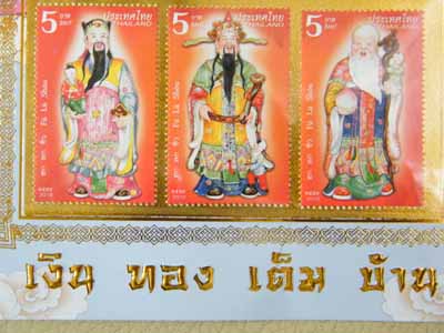 วันนี้ผมโชคดี ได้สิ่งมงคล คือตราไปรษณียากรชุดเทพเจ้า ฮก ลก ซิ่ว จาก คุณหยก/กัญญา แห่ง "สยามมีดี" ราชินีกล่องกำมะหยี่ใส่พระ ฯลฯ