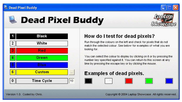 บอกก่อนนะครับสำหรับหลายๆท่านที่คิดว่าการทดสอบ Dead pixel ไม่สำคัญ เพราะนึกว่าอยู่ในประกัน 7 วัน แต่เอาเข้าจริงๆแล้วเาไม่นับประกัน 7 วันนะครับ (ยกเว้นบ้างร้านที่รับประกันพิเศษส่วนนี้ให้ หรือลดราคาเครื่องที่มี Dead pixel โดยจะบอกผู้ซื้อก่อนแล้ว) ในหนึ่งร้านเวลารับเครื่องมาบางที่เป็นร้อยๆเครื่องท ำให้ไม่สามารถทดสอบส่วน นี้ได้ จึงเป็นหน้าที่เราต้องมานั่งทดสอบ Dead pixel เอง โดยในแทบทุกร้านจะมีโปรแกรมสำหรับทดสอบ Dead pixel ให้ (แต่บ้างร้านก็ต้องทวงจึงจะให้) เพื่อให้ลูกค้าทดสอบด้วยตัวเอง เพื่อยืนยันจะได้ไม่มาโวยวายทีหลัง ซึ่งถ้าลูกค้าดูไม่ถี่ถ้วนแล้วมาขอใช้สิทธิประกัน 7 วัน ร้านส่วนใหญ่ก็จะไม่รับครับ เพราะถือว่าผู้ซื้อเป็นคนทดสอบด้วยตัวเองแล้ว