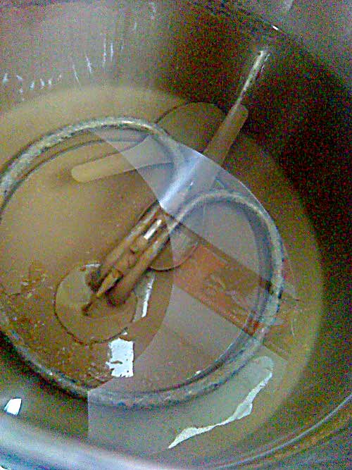เพื่อนผมก็เปิดให้ ผมมองลงไปในหม้อต้มตกใจมากๆๆๆๆๆๆๆๆๆๆๆๆๆๆๆๆๆ ว่า ทำไมมันมีสภาพเป็นแบบนี้ OMG~ มันเต็มไปด้วยขี้ตระกอน และก็ผง แถมมีช้อนสั้น 2 ช้อนในหม้อ งงมากๆๆๆ