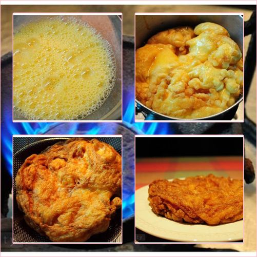 (ตามปกติแล้ว การใส่หมูสับ หรือใส่แป้งลงไป จะทำให้ไข่หนาขึ้นมาได้มากขึ้น