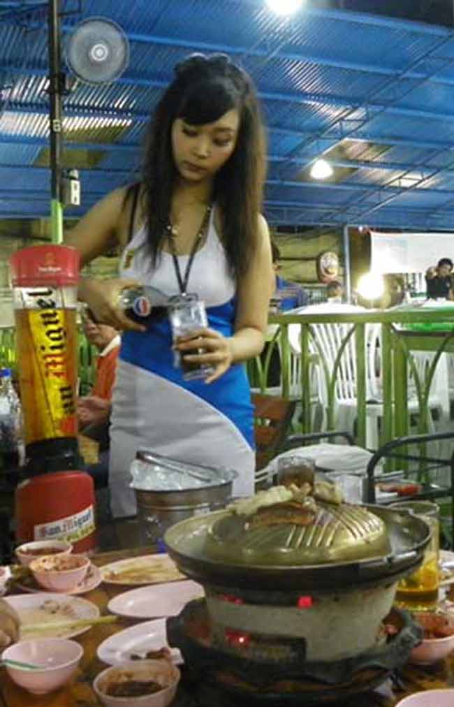 สาวเชียร์เบียร์ San Miquel แต่รินของชอบ pepsi ให้ท่านสิทธิโชติครับ ... อย่างกับเธอจะรู้ว่า ท่านสิทธิโชติชอบ pepsi มากกว่าเบียร์ แซน มิเกวล ที่เธอเชียร์แขกอยู่ครับ ... คนเรานี่ก็แปลก บางที ว่าแต่เขา อิเหนาเป็นเอง ครับ ... อย่าเถียงนะครับท่านสิทธิโชติ  |