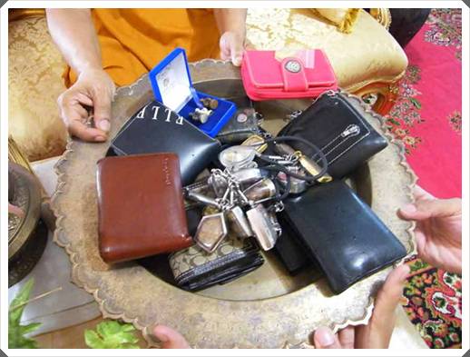 ท่านไม่ควรใช้กระเป๋าสีแดง หรือกระเป๋าที่ทำมาจากหนังสัตว์ที่เป็นจตุรงคบาท ควรใช้กระเป๋าสีน้ำตาล ม่วง