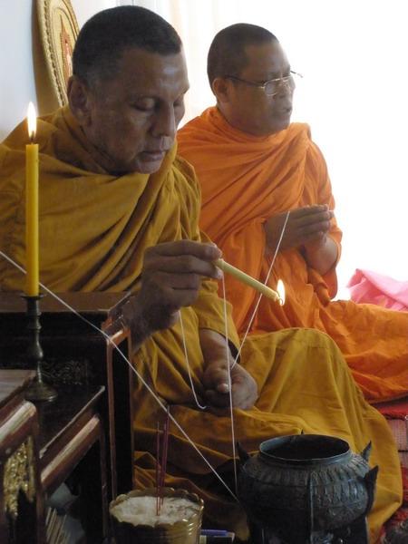 วันหยุดยาวเลยได้โอกาสทำบุญบ้านครับ ได้นิมนต์พระอาจารย์ใจวัดพระยาญาติและท่านอาจารย์เฉลิมวัดภูมรินทร์ เกจิอาจารย์ในพื้นที่อัมพวา ศิษย์ร่วมอาจารย์เดียวกันกับอาจารย์ใจ คืออาจารย์หนูที่ให้วิชาทำตะกรุดจันทร์เพ็ญอันโด่งดังของท่าน เชิญชมรูปถ่ายพอสังเขปครับ องค์ที่ 2 อาจารย์เฉลิม |