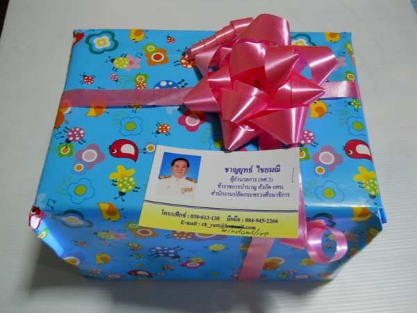 แต่ท่านก็ได้ส่งของขวัญ ฝากให้ผมไปมอบให้ wee-2494 แทนท่านด้วย (ข้างในเป็นพระบูชารูปเหมือนหลวงปู่ทิม ครับ) ผมได้มอบให้ wee-2494 หรือป้อม หรือ พล.ร.ท. วีระชัย วิมลสถิตย์ เรียบร้อยแล้วครับ ... ภาพถ่ายตอนมอบท่านสิทธิโชติถ่ายไว้ คงนำมาให้ชมภายหลังครับ