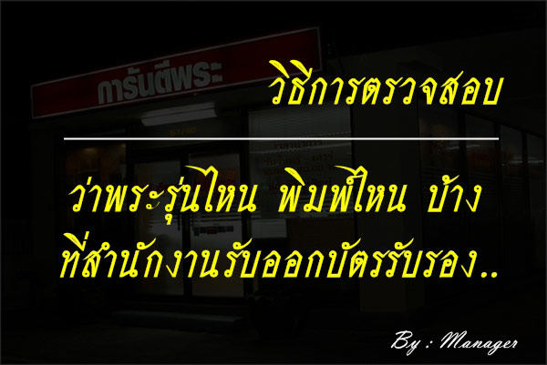 หัวข้อกระทู้ : => วิธีการตรวจสอบว่า พระเครื่องรุ่นไหน พิมพ์ไหนบ้าง ที่สำนักงานรับออกบัตรรับรองได้แล้ว... |