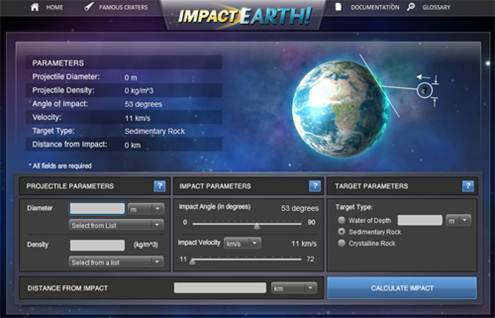 นักวิทยาศาสตร์ มหาวิทยาลัยเพอร์ดู รัฐอินเดียนน่า สหรัฐอเมริกา ร่วมกับ วิทยาลัยอิมพีเรียล ในกรุงลอนดอนของอังกฤษ พัฒนาเว็บไซต์ที่ชื่อ อิมแพ็ค เอิร์ธ ขึ้นมาเอาไว้ใช้คำนวณว่า ถ้าหากอุกกาบาตตกลงมา จะเกิดผลกระทบอะไรขึ้นบ้าง เว็บไซต์ดังกล่าวอยู่ในรูปแบบมีปฏิสัมพันธ์ และมีข้อมูลทางวิทยาศาสตร์ชัดเจน เพียงพอสำหรับให้ กระทรวงกลาโหม และสำนักงานอวกาศนาซ่าใช้งาน แต่ก็เหมาะกับนักเรียนนักศึกษา ที่ต้องการศึกษาหาความรู้