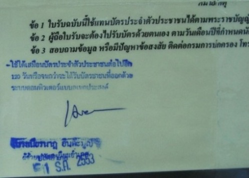 และทางจีพระขอเอกสารบัตรประชาชน เมื่อใบเหลืองหมดอายุแต่ผมยังไม่ได้รับบัตรประชาชนจากปัญหาที่ทุกท่านคงทราบดีอยู่แล้ว และส่งรูปถ่ายที่ทางราชการต่ออายุใบเหลืองเดิม ไปให้ทางเวปมาสเตอร์