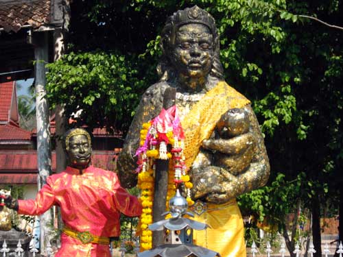 มีอยู่ครอบครัวหนึ่งมากับประมาณ 7-8 คน มีเด็กเล็กอายุประมาณ 7 ขวบ หรือ 8 ขวบไม่แน่ใจ คุณแม่กำลังพากันไปกราบไหว้รูปปั้นพระนางสุพรรณอัปสรจอมเทวี เผอิญผู้เขียนได้ยินคุณแม่พูดกับบรรดาญาติที่มาด้วยกันว่า ลูกชายตนเองเมื่อคืนนี้ฝันเห็นยักษ์ท้าวเวสสุวรรณและบอกให้คุณแม่พาไปดูท้าว เวสสุวรรณที่ไหนก็ได้