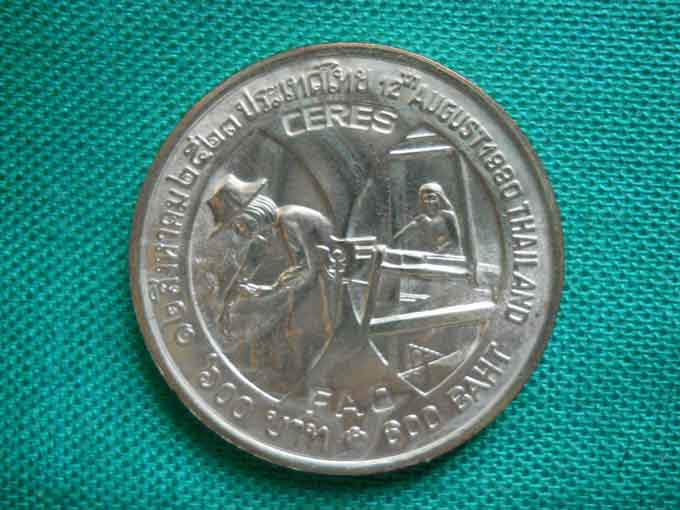 ประเด็น ... ผมเข้าใจว่า เหรียญกษาปณ์ เนื้อเงิน ราคาหน้าเหรียญ 600 บาท เหรียญแรก ที่โรงกษาปณ์ผลิต คือ เหรียญ CERES ผลิตเมื่อปี พ.ศ.2523 เป็นเหรียญที่ระลึก (นำมาใช้หนี้ตามกฎหมายเช่นเหรียญหมุนเวียนก็ได้) ในวโรกาสที่องค์การ F.A.O. ถวายพระเกียรติ อัญเชิญ พระบรมฉาญาทิสลักษณ์สมเด็จพระนางเจ้าสิริกิติ์ พระบรมราชินีนารถ ลงบนเหรียญ