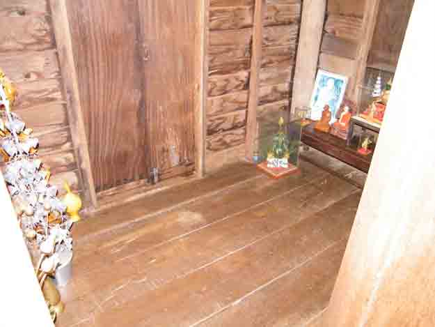 ภาพที่สอง เป็นห้องนอนของหลวงปู่ครับ ประตูที่เห็นในภาพ เป็นประตูหลักสำหรับเข้า-ออก เพราะอยู่ใกล้บันใดขึ้น-ลงของกุฏิ แต่ผมยืนถ่ายภาพจากอีกประตูหนึ่งซึ่งเป็นประตูด้านเฉลียง (เข้าใจว่าหลวงปู่มั่นใช้ประตูนี้ออกมาพบและให้โอวาทธรรม แก่ลูกศิษย์ และ ญาติโยมครับ  |