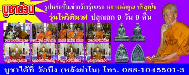 | หัวข้อกระทู้ : ประกาศ...ด่วน ด่วน ด่วน รับพระรุ่นไพรีพินาศวัดบึงได้ตั้งแต่วันนี้เป็น ต้นไป |