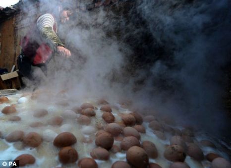 การรับประทานไข่ที่ต้มด้วยน้ำปัสสาวะ เป็นวัฒนะธรรมของคนในท้องถิ่นมานับพันปี โดยกว่าจะได้รับประทานต้องต้มแล้วรอให้เวลาผ่านไป1วัน 1 คืน