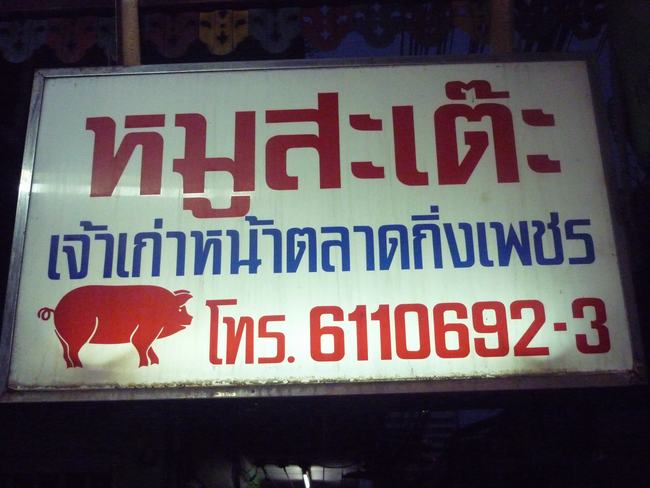 ปัจจุบันย้ายมาขายที่ตลาดกิ่งเพชร จึงเปลี่ยนชื่อเป็นหมูสะเต๊ะอากง ครับ