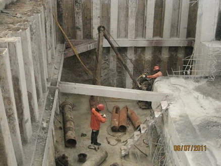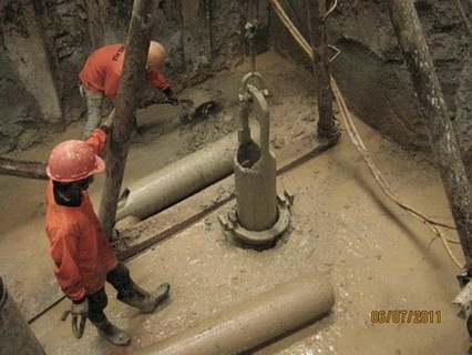 เจาะทะลวงจนกระทั่งหมดแรง เอ๊ย!จนถึงดินเเข็งเจาะจนเจาะไม่ลง ก็จัดการเอาคอนกรีตเทใส่ลงไปในรูแล้วดึงปลอกเหล็กที่ฝังลงไปในดินขึ้นมา ปล่อยให้คอนกรีตแข็งอยู่ในรู ก็ถือว่าเสร็จสิ้นวีธีการเจาะเข็มครับ |