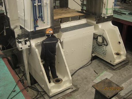 - ตามรูป เป็นงานตั้งเครื่องปั๊มขนาดใหญ่ แรงอัด 6300 ตัน ส่วนที่ผมรับผิดชอบคือแท่นคอนกรีตที่อยู่ล่างสุด เป็นส่วนที่"รอง"และ"รับ"ครับ