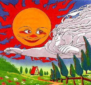 จากเรื่อง ลมกับพระอาทิตย์ ลมกับพระอ่าทิตย์ได้ถกเถียงกันว่าใครจะมีอำนาจเหนือกว่ากัน ในที่สุดได้ตกลงกันว่าถ้าใครสามารถทำให้คนเดินทางถอดเสื้อคลุมออกจากร่างได้จะเป็นผู้ชนะ ลมขอทดลองก่อนโดยการพัดด้วยความเร็วอ่อนๆ จนค่อยๆหนักขึ้นทุกทีๆ แต่คนเดินทางกลับยิ่งกระชับเสื้อคลุมของตนไว้แน่น ส่วนพระอาทิตย์นั้นใช้วิธีฉายแสงอ่อนๆขับไล่ความหนาวเย็น เมื่อแสงเริ่มทวีความร้อนแรงมากขึ้นๆคนเดินทางจึงถอดเสื้อคลุมของตนออก