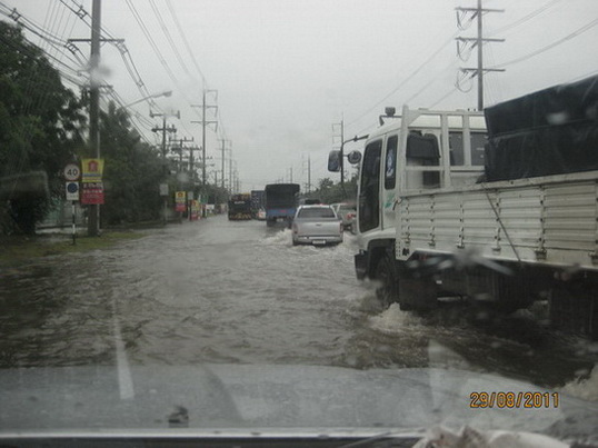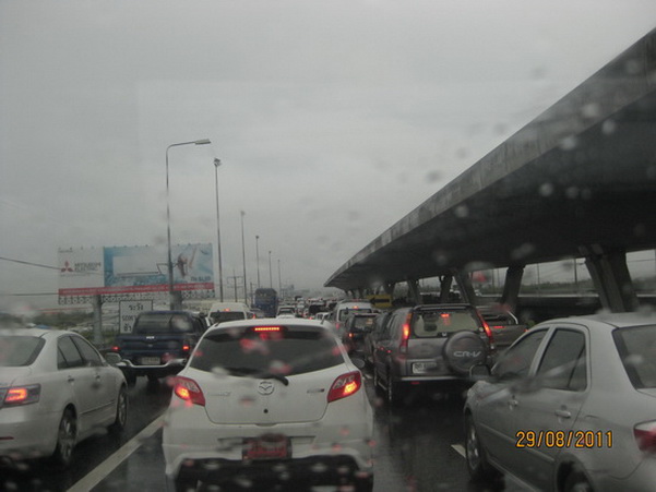 - ขาลงจาก บูรพาวิถี รถติดยาวเยียด สาเหตุจากจากน้ำท่วม ถนนใน อมตะ |
