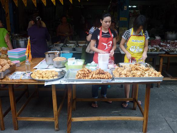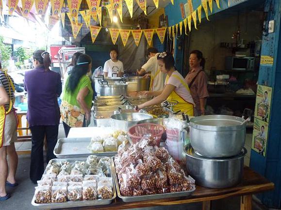 ร้านแรกที่จะพาไปชิมเป็นร้านข้าวแกงสุทธิพร ขายอยู่ปากซอยอยู่เจริญ ถนนอโศก-ดินแดง มีรายการอาหารเจมากมายทั้งต้มจับฉ่าย ต้มพะโล้ แกงเผ็ด สารพัดผัด และยังขายเต้าหู้ทอด เผือดทอด หัวไช้ท้าวทอด ครับ |