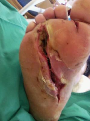 สาเหตุเกิดจากชายผู้ประสบอุบัติเหตุคนนี้ขึ้นไปยืนบนเก้าอี้เพื่อเปลี่ยนหลอดไฟ แต่หลอดไฟร้อนจัด เลยหลุดจากมือ แล้วหล่นแตกบนพื้น เป็นจังหวะเดียวกับที่เขาก้าวลงจากเก้าอี้ แล้วบังเอิญไปเหยียบเอาเศษ แก้วที่แตกอยู่ ทำให้เป็นแผลติดเชื้อรุนแรง จากเศษแก้วหลอดไฟที่มีสารปรอท เคลือบอยู่