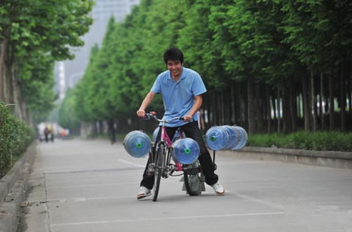 งานนี้ ก็ได้สาวหลีจิ่น ลูกสาวของคุณลุงมารับบทอาสาท้าเสี่ยงขี่รถจักรยานคันนี้บนทะเลสาบในสวนสา ธารณะเน่ยซาหู ที่เมืองหวู่ฮั่น มณฑลหูเป่ย ปรากฎว่า มันสามารถขี่บนน้ำได้จริง ๆ ซะด้วย แถมเมื่อยามที่ขึ้นจากน้ำ ก็ยังสามารถขี่เจ้าจักรยานสุดเจ๋งคันนี้บนพื้นดินกลับบ้านได้แบบสบาย ๆ อีกต่างหาก |