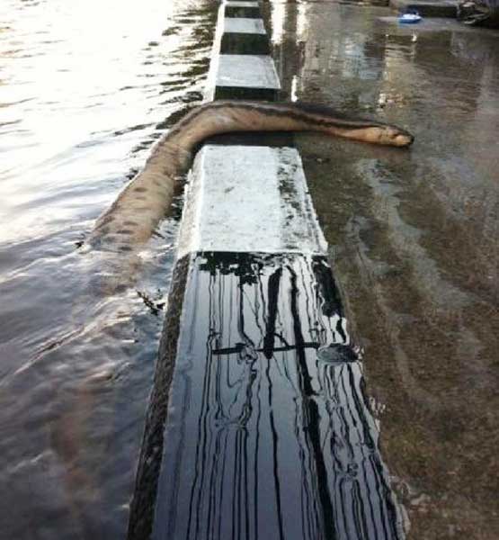 เมื่อวันที่ 30 ตุลาคมที่ผ่านมา มีสื่อมวลชนรายหนึ่งซึ่งไปทำข่าวน้ำท่วมย่านจรัญสนิทวงศ์ 89-91 ได้พบเห็นสัตว์ซึ่งน่าจะเป็นงูชนิดหนึ่ง กำลังเลื้อยขึ้นมาบนทางเท้า จึงได้บันทึกภาพไว้ ก่อนที่ภาพดังกล่าวจะถูกนำมาเผยแพร่ในโลกออนไลน์ จนส่งผลให้เกิดกระแสฮือฮา ในเฟซบุ๊กว่าสัตว์ที่มีรูปลักษณ์คล้ายงูชนิดนี้ คือ สัตว์อะไรกันแน่?