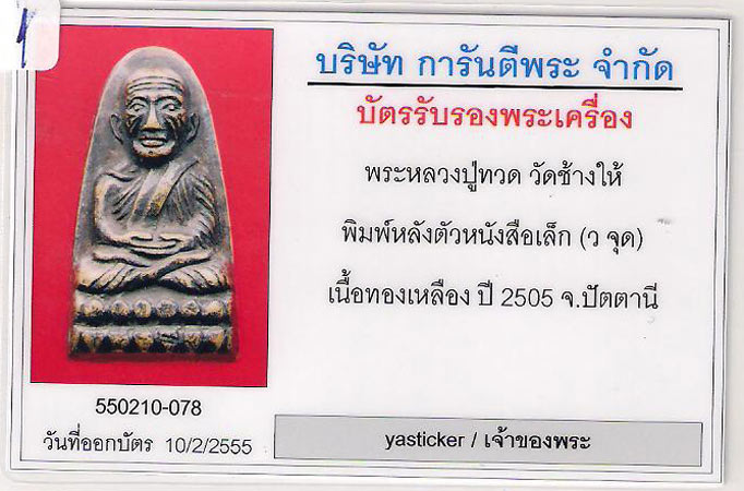 สมาชิกการันตีพระ ที่ส่งพระไปตรวจสอบเพื่อออกบัตรรับรองพระเครื่อง