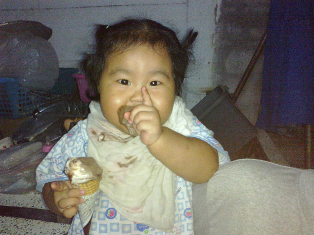 ...ลูกเพื่อนผมเอง..เเอบไปเห็นพอดี มีการทำท่า จุ๊ๆ อย่าบอกพ่อเเม่นู๋นะว่า นู๋เเอบเอาไอติมมากินอีกเเล้ว