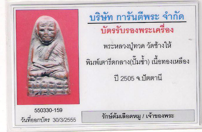...เพื่อความสะดวกของผู้ตั้งประมูล ซึ่งยินดีส่งพระไปเปลี่ยนบัตรรับรองครับ |