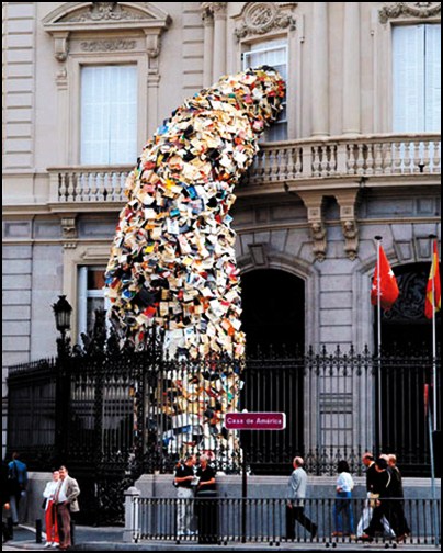 ใครบอกว่าหนังสือมีดีแค่อ่านเอาความรู้หรือแค่หาความบันเทิงใส่ตัว แล้วล่ะก็ คิดใหม่ได้เลย เพราะ อลิเซีย มาร์ติน ศิลปินชาวสแปนิชรายหนึ่งได้พิสูจน์ให้เห็นแล้วว่ามันมีค่ามากกว่านั้น เมื่อเธอจัดการเอาหนังสือหลายพันเล่มมาทำเป็นงานศิลปะ ที่ทั้งสวยงาม และอลังการงานสร้างสุดๆมาร์ติน วัย 48 ปี ใช้หนังสือทั้งหมด 7,000 เล่ม มาสร้างเป็นงานประติมากรรมชิ้นเอก ที่ทำให้ดูเหมือนว่า หนังสือมันกำลังทะลักออกมาจากตึก ซึ่งเธอใช้เวลาในการสร้างสรรค์ผลงานชั้นยอดนี้เป็นเวลา 3 สัปดาห์ด้วยกัน