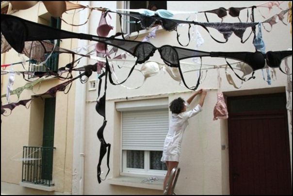 สำนักข่าวต่างประเทศ รายงานมาว่า แคว้นล็องก์ด็อก - รูซียง ประเทศฝรั่งเศส หญิงสาวได้นำ ชุดชั้นใน แขวนเชื่อมต่อกัน ระหว่างตึก ผู้ริเริ่มความคิดนี้ คือ บาบาร่า โดยเธอกชักชวนให้ สาว ๆ นำ ชุดชั้นใน มาแขวนประดับ โดยนำมาเชื่อมต่อกัน ระหว่างตึก เพื่อเป็นการเรียกร้อง ให้โครงการท่าเรือ ของบริษัทเอกชน ได้ตะหนักให้ก่อสร้างท่อเรือที่เป็นมิตร กับ สิ่งแวดล้อม