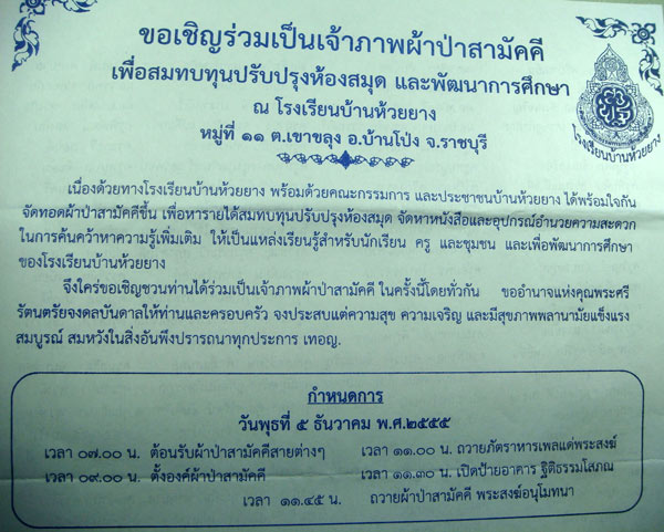 ผมอยากเปิดกระทู้ให้สมาชิกจีพระร่วมทำบุญทอดผ้าป่าสามัคคี เพื่อสมทบทุนปรับปรุงห้องสมุด ณ โรงเรียนบ้านห้วยยาง ต.เขาขลุง อ.บ้านโป่ง จ.ราชบุรี เป็นโรงเรียนเก่าผมสมัยประถม มีเด็กประมาณ120คน ใช้งบประมาณประมาณ400,000บาท